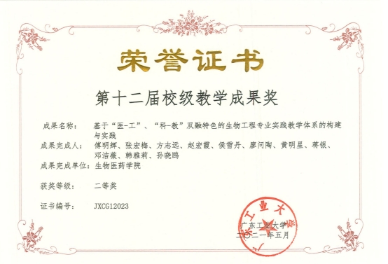 生物工程专业经过15年的建设和发展,将漫蛙漫画 的工科优势与漫蛙漫画 的创新研究成果相结合,构建了“医-工”、“科-教”双融合、紧扣“大湾区”产业经济发展需求的生物工程人才培养实践教学体系(图1)。通过精品资源课程《生物化学》和在线开放课程《微生物工程工艺及设备》两个省级项目的建设,带动了一系列相关的实践课程的改革;通过省级“梯队式导师制”项目、国家级产学研协同育人项目的实施,促进了“医-工”、“科-教”双融合的人才培养模式的建立和生物工程省级实践教学团队的建设;通过实验实训、课程设计、生产实习、毕业设计、创新研究五个实践教学环节的实施,实现了从专业基础到综合设计直至创新研究三个层次的全程培养,获得了漫蛙漫画 第十二届教学成果二等奖。