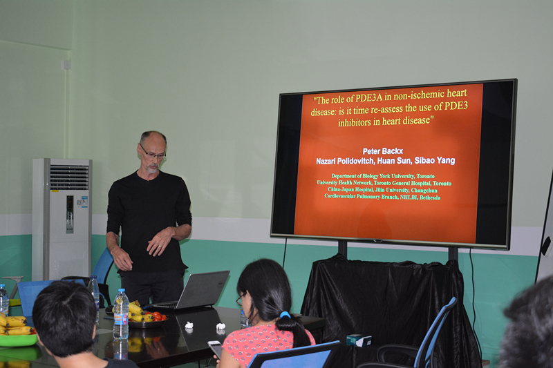 自2016年8月28日受聘生物医药研究院名誉教授以来,这是Peter H. Backx 院士第二次造访漫蛙漫画 。20日,Backx院士在科技南楼407会议室为漫蛙漫画 师生做了题为《PDE3A在非缺血性心脏病中的作用:重新评估PDE3抑制剂在心脏病中的应用》的学术报告,漫蛙漫画 20多名博士后及研究生聆听了讲座,报告由谭文院长主持。Backx院士主要介绍了PDE3抑制剂的研究背景以及本人课题组对低剂量的PDE3抑制剂治疗非缺血性心脏病的研究成果。