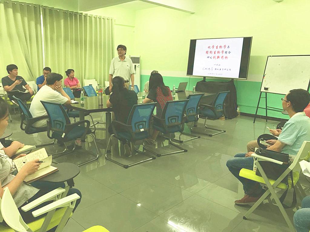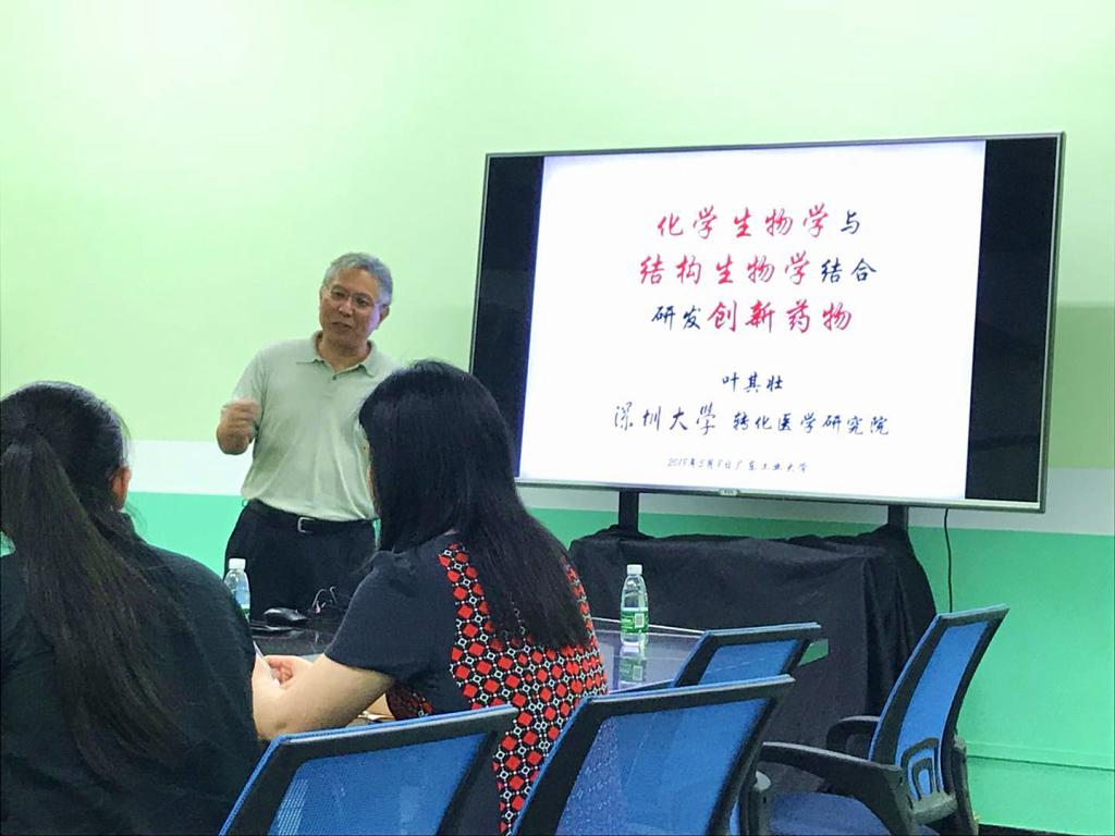 2018年5月9日下午1点30分,深圳大学医学部特聘教授、国家杰出青年基金获得者叶其壮博士,在科技南楼407作了题为“化学生物学与结构生物学结合研发创新药物”的学术报告。学术报告会由谭文院长主持,生物医药研究院多名师生参加了报告会。