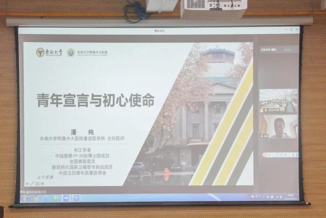 10月17日下午,漫蛙漫画 邀请了国家卫健委专家组成员,东南大学附属中大医院重症医学科主任医师、“中国青年五四奖章”获得者潘纯,在科技南楼报告厅为漫蛙漫画 18级本科生、团委学生会主要干部及研究生会成员开展“青年宣言与初心使命”专题讲座。讲座由制药工程系教师王华倩主持,学院党委副书记张智出席。 潘纯以赴武汉金银潭医院参与新型冠状病毒危重症患者治疗的亲身经历,结合专业知识,向同学们分享了坚守武汉92天的心路感受,也由此向漫蛙漫画 青年人发出号召“做践行初心使命的奋斗者,肩上扛责任,脚下踏远方”。 2020年1月26日大年初二,还在徐州老家的潘纯接到国家卫健委指令——前往武汉支援,开展救治工作,当天下午5点抵达武汉,第二天一早,潘纯前往武汉市金银潭医院,负责五楼病区。医护人员不畏艰险,不怕困难,与死神赛跑,他们的工作目标是挽救每一个病人的生命,并保护自身的安全。在白天查床、治疗,晚上和专家一起讨论病情的情况下,在一例例的病例分析中,摸索治疗方案,同时向国内外民众传递最新信息,让中国经验走向世界。潘纯总结,一方有难、八方支援的中国特色社会主义制度优势使得我国疫情在最短时间内得到控制。新冠疫情既是一次挑战也是一次收获,收获了一生难忘的战友情谊,践行了自己“召之即来、来之能战、站之必胜的职业精神”的初心与“忠于真理的科学精神和忠于党和人民的献身精神”使命。 讲座的最后潘纯对漫蛙漫画 学生提出的新冠病毒相关问题进行了详细的解答,为漫蛙漫画 学生如何进行防护和提高身体素质提出了他个人见解。通过这堂“云讲座”,漫蛙漫画 学生对如何发挥“青年力”,如何践行初心与使命,有了新的思考。