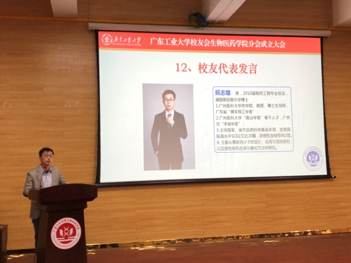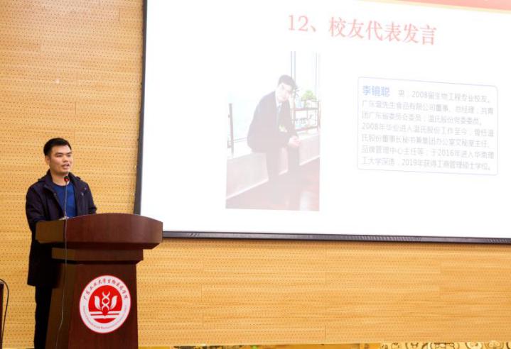 校友代表阮志雄、李镜聪作了发言,表达对母校的怀念和深沉热爱,向老师和学院的培养表达深深的感谢,表示往后将会在生物医药相关的领域乘风破浪,抓住时代机遇不断提升自我,为服务社会、反馈母校作出贡献。