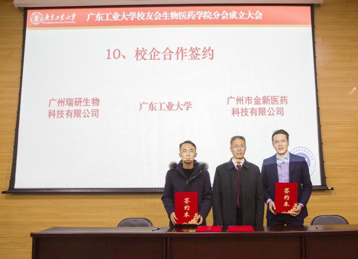 学院校友分会就发挥校友开展校企产学研合作、建立校外实习基地、产学研基地等事项进行签约仪式,赵肃清代表学校与校友单位广州瑞研生物科技有限公司、广州市金星医药有限公司签署合作协议。