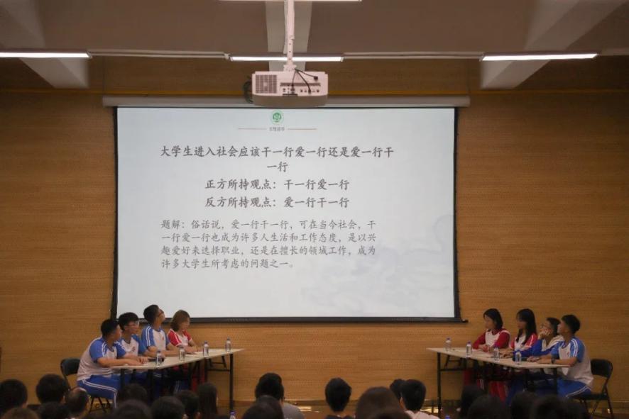 比赛过程,双方就辩题从社会价值观、大学职业选择、职业平等反面进行剖析,经过立论、质询、盘问、自由辩论、结辩等环节的较量,正方大学生进入社会后应该干一行爱一行,更具说服力,获得评委认可,胜出比赛。