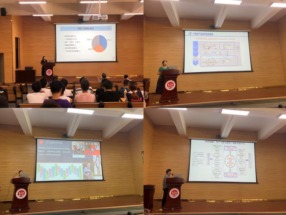 制药工程团队郑俊霞教授、生物工程团队傅明辉教授、创新药物与精准医学团队袁正强教授、重大慢性疾病与创新药物研究团队穆云萍博士,依次介绍了各个团队的整体情况、科研方向、师资队伍、研究生培养模式,让学生充分地了解学院的科研团队和研究方向。