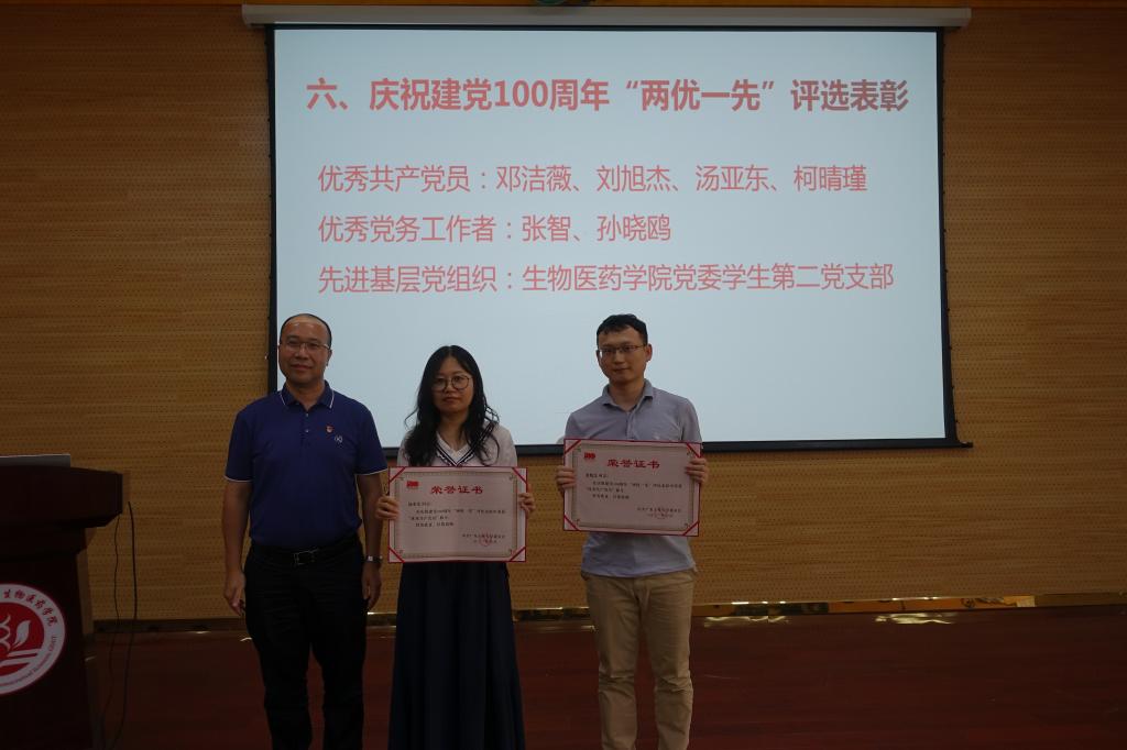 学院党政领导班子成员为在学校庆祝建党100周年“两优一先”评选表彰中获得优秀共产党员、优秀党务工作者表彰的教职工、获得先进基层党组织表彰的党支部颁发荣誉证书;为在漫蛙漫画 第二届青年教师授课竞赛暨漫蛙漫画 第九届青年教师教学竞赛预赛中获奖的教师颁发荣誉证书及奖金。