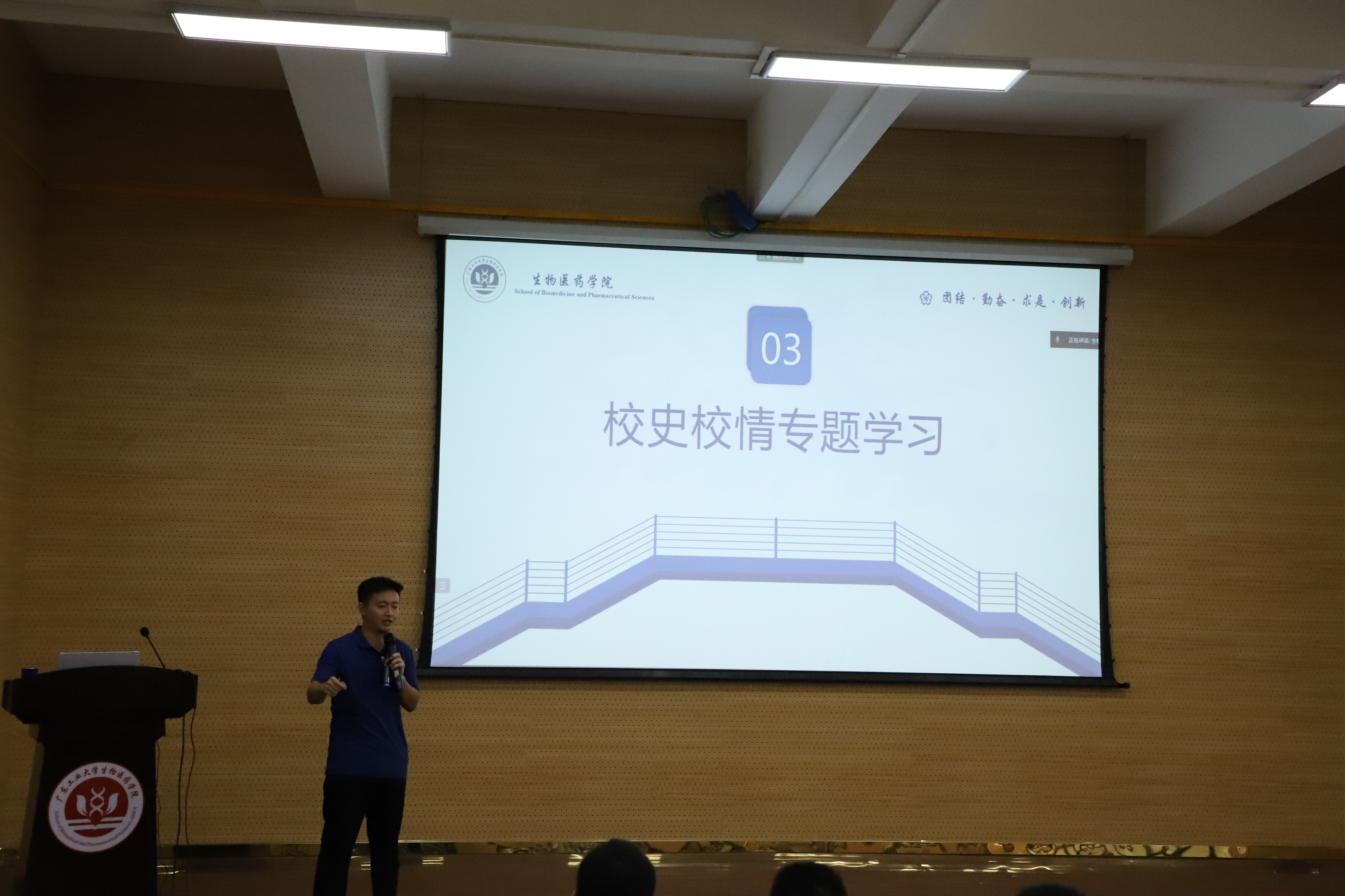 为在新生入学教育阶段强化新生爱校荣校意识,筑牢遵纪守法根基,漫蛙漫画 在9月8日下午在科技南楼报告厅开展校史学习与校纪校规教育大会,由2022级辅导员陈海琛主讲。