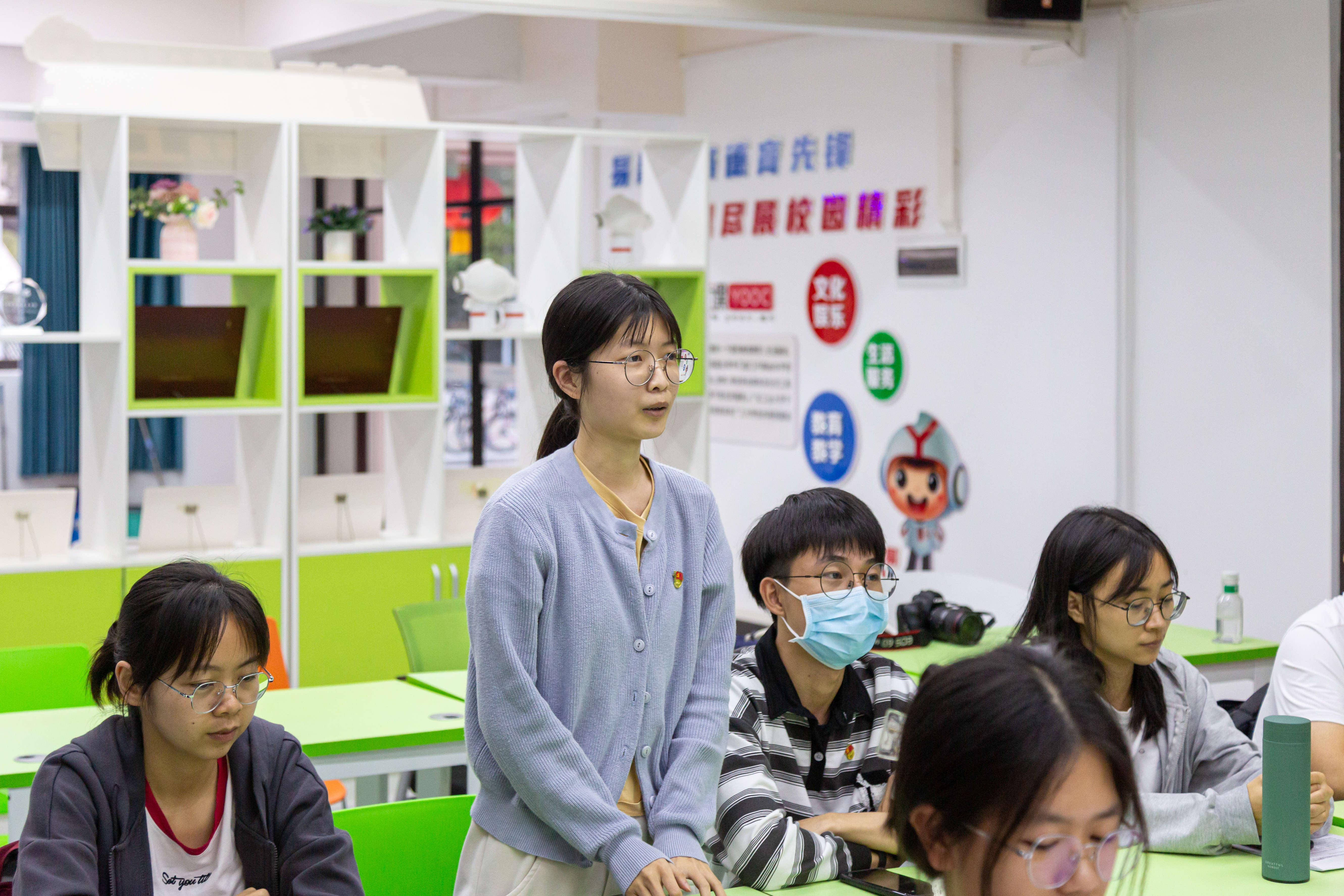 在交流环节,学生骨干结合学习党的二十大精神和在校学习生活的主要任务进行交流。学生骨干围绕“大学生党员的发展和培育”“大学生心理健康工作”“做好未来规划和实现高质量就业”等为题进行交流,张智以及辅导员为同学们进行答疑解惑,激发学生正能量,善用朋辈力量,从容应对各阶段的发展困惑。