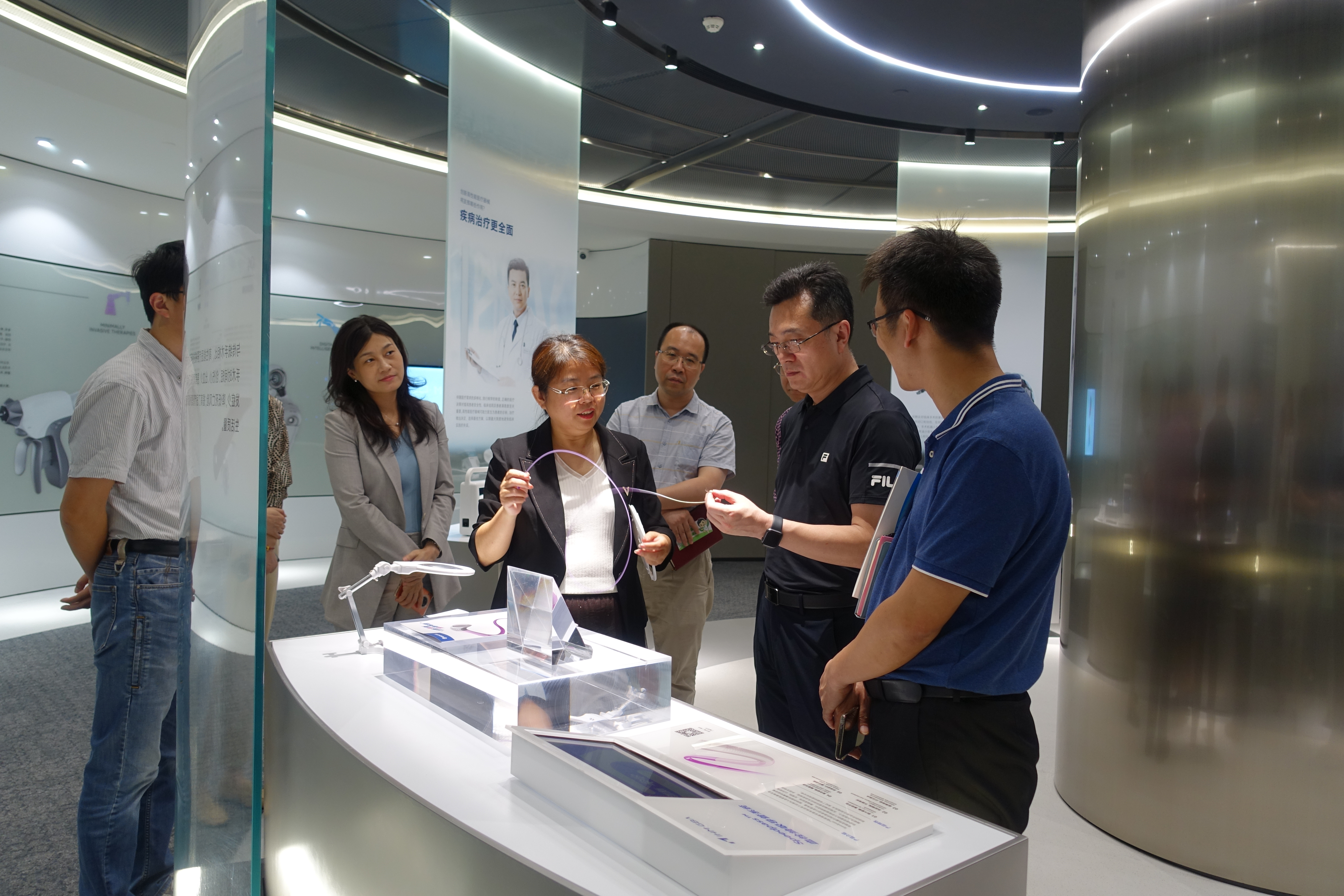 在粤港澳大湾区高性能医疗器械创新中心,栾天罡一行实地了解了中心“聚焦高性能医疗器械领域,力促医工深度结合与共创”的建设理念,在交流会上,栾天罡表示中心围绕产业链部署创新链,搭建产业创业创新公共平台,提升高精尖医疗器械自主研发能力和产业化水平,加强与高校“产学研”的联动,对我校医工融合的实施推进有很大的空间,也希望未来能共同合作、资源共享,为人才培养和校企合作注入新的活力。