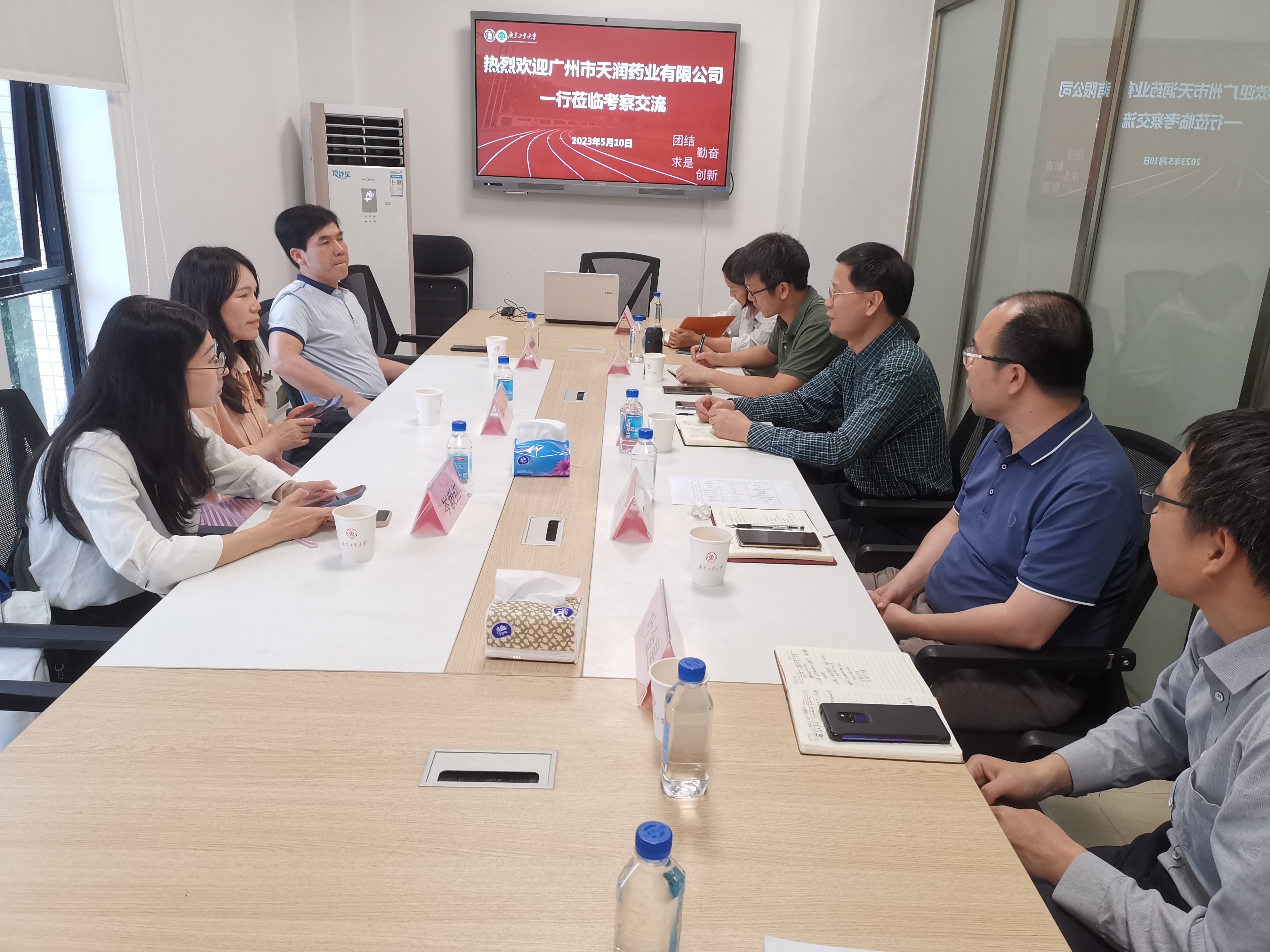 徐向东对广州市天润药业有限公司一行的到来表示热烈欢迎,并介绍了学院情况。林汀、管永鸿介绍了公司情况。天润药业有限公司成立于2001年,该企业为制药企业提供高品质的药用原料、辅料、包材以及技术等一站式服务。在行业内深耕20多年,服务客户超过3000家,国内行业排名靠前。随后,双方就联合实验室建设、人才培养和学生实习就业等方面展开深入交流。