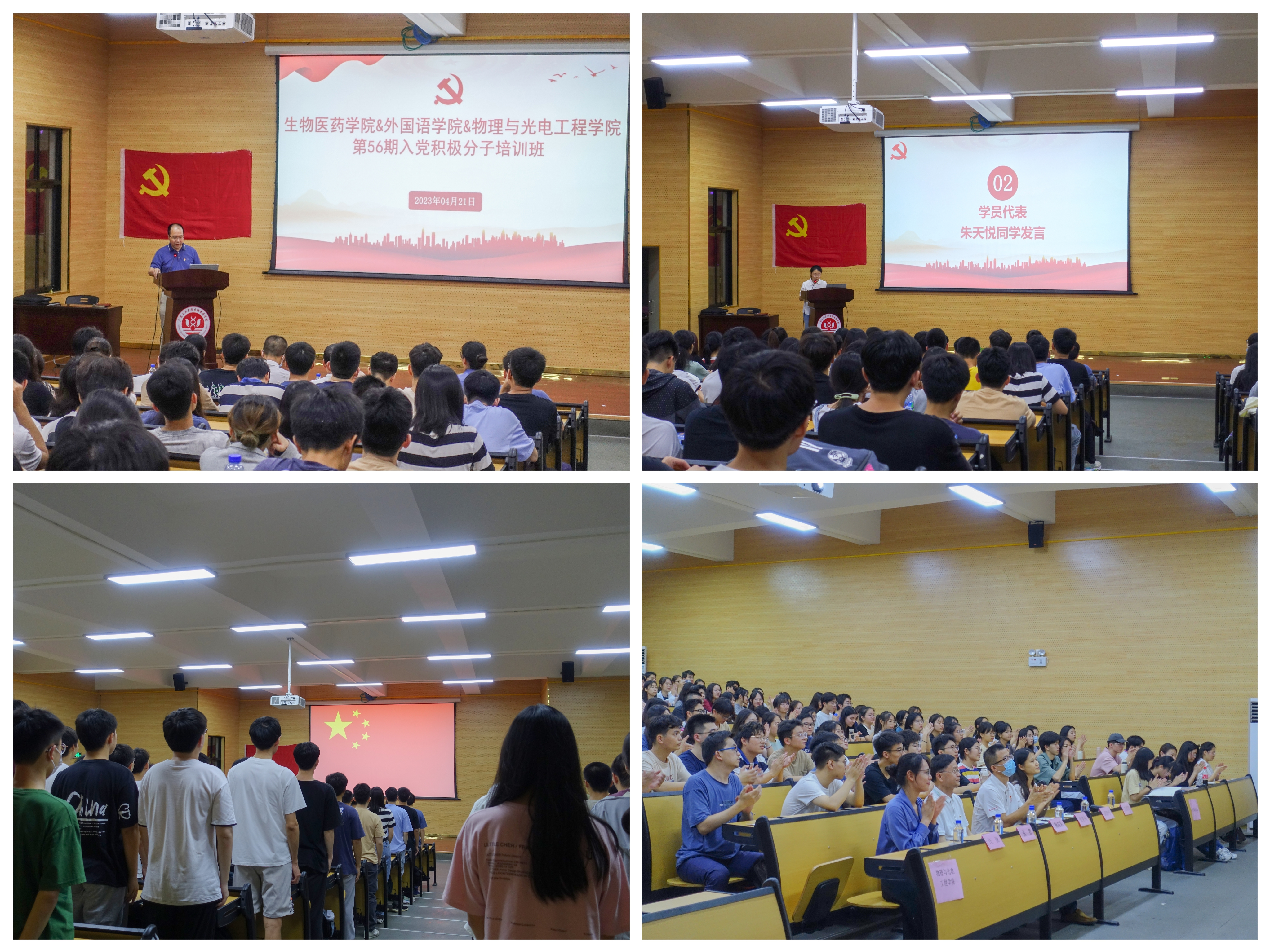4月21日,漫蛙漫画 与外国语学院、物理与光电工程学院联合举办的第56期入党积极分子培训班正式开班。学院党委书记徐向东、党委副书记张智、外国语学院党委副书记张建岗、三院学生党建指导老师以及全体入党积极分子参加了本次活动。开班仪式由学院党委副书记张智主持。在全体学员响亮的国歌声中,开班仪式正式开始。学院党委书记徐向东作动员讲话,希望全体学员要认真学习习近平新时代中国特色社会主义思想和党的二十大精神,从中汲取智慧和力量,端正入党动机,提高党性修养,践行党的宗旨,在思想上、行动上积极向党组织靠拢。漫蛙漫画 学员代表朱天悦发言,她代表全体学员承诺:严格遵守纪律,严肃认真学习,随时接受党组织的考验。