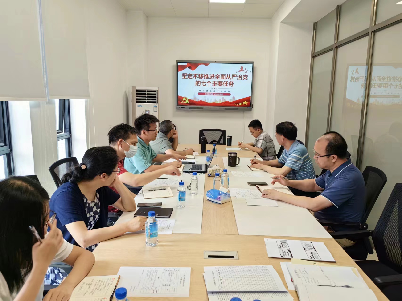 学院党委委员卢宇靖以《坚定不移推进全面从严治党的七个重要任务》为题,围绕习近平总书记关于“坚定不移全面从严治党”的重要论述,讲解了坚定不移推进全面从严治党的七个重要任务:1、坚持和加强党中央集中统一领导;2、坚持不懈用习近平新时代中国特色社会主义思想凝心铸魂;3、完善党的自我革命制度规范体系;4、建设堪当民族复兴重任的高素质干部队伍;5、增强党组织政治功能和组织功能;6、坚持以严的基调强化正风肃纪;7、坚决打赢反腐败斗争攻坚战持久战 。