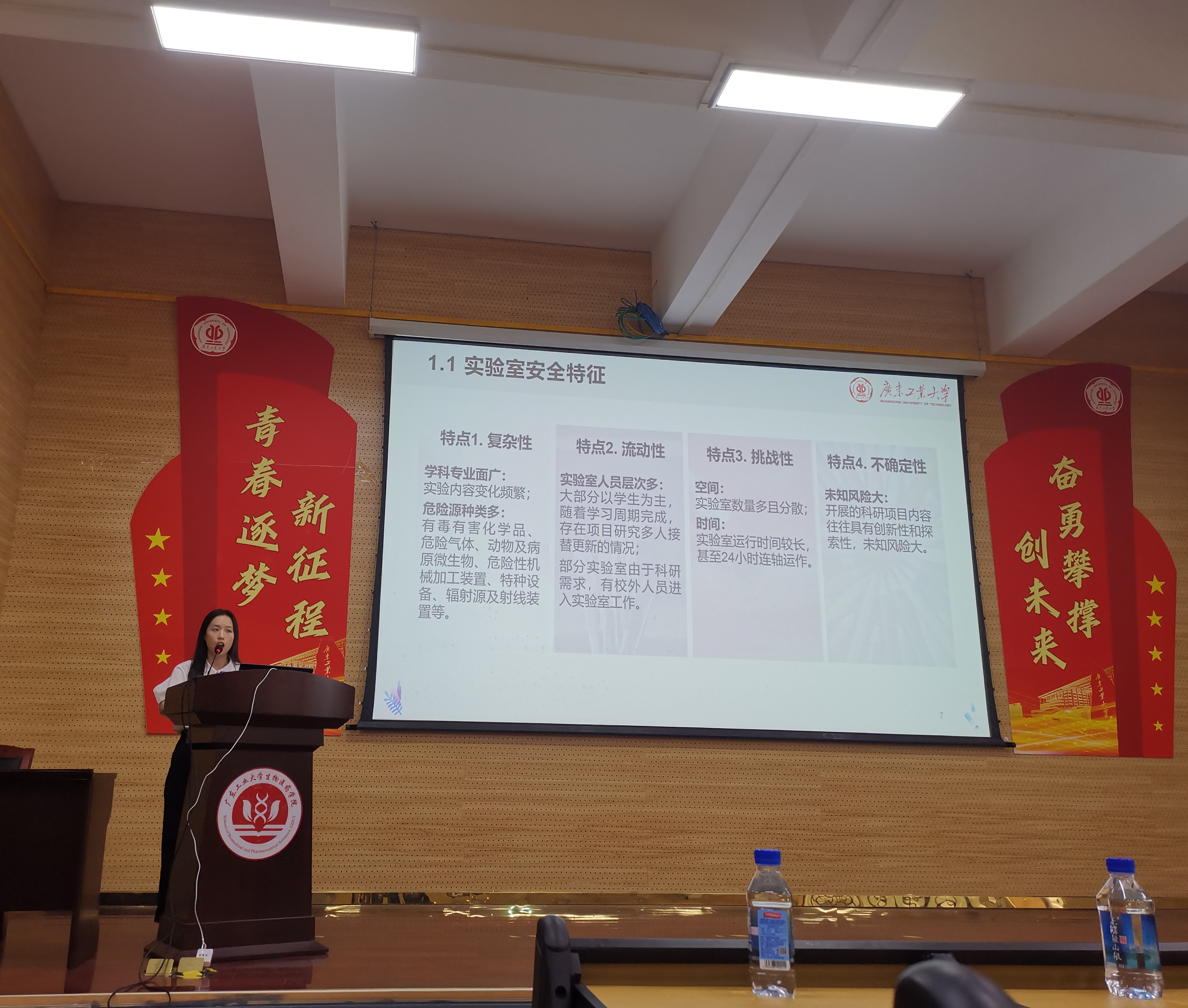彭冠族作了《增强安全意识,防范实验室安全风险》的主题报告,结合我校安全检查大数据,对实验室内常见的安全隐患,如用电安全隐患、化学品安全隐患、特种设备安全隐患等进行辨识与对策分析。