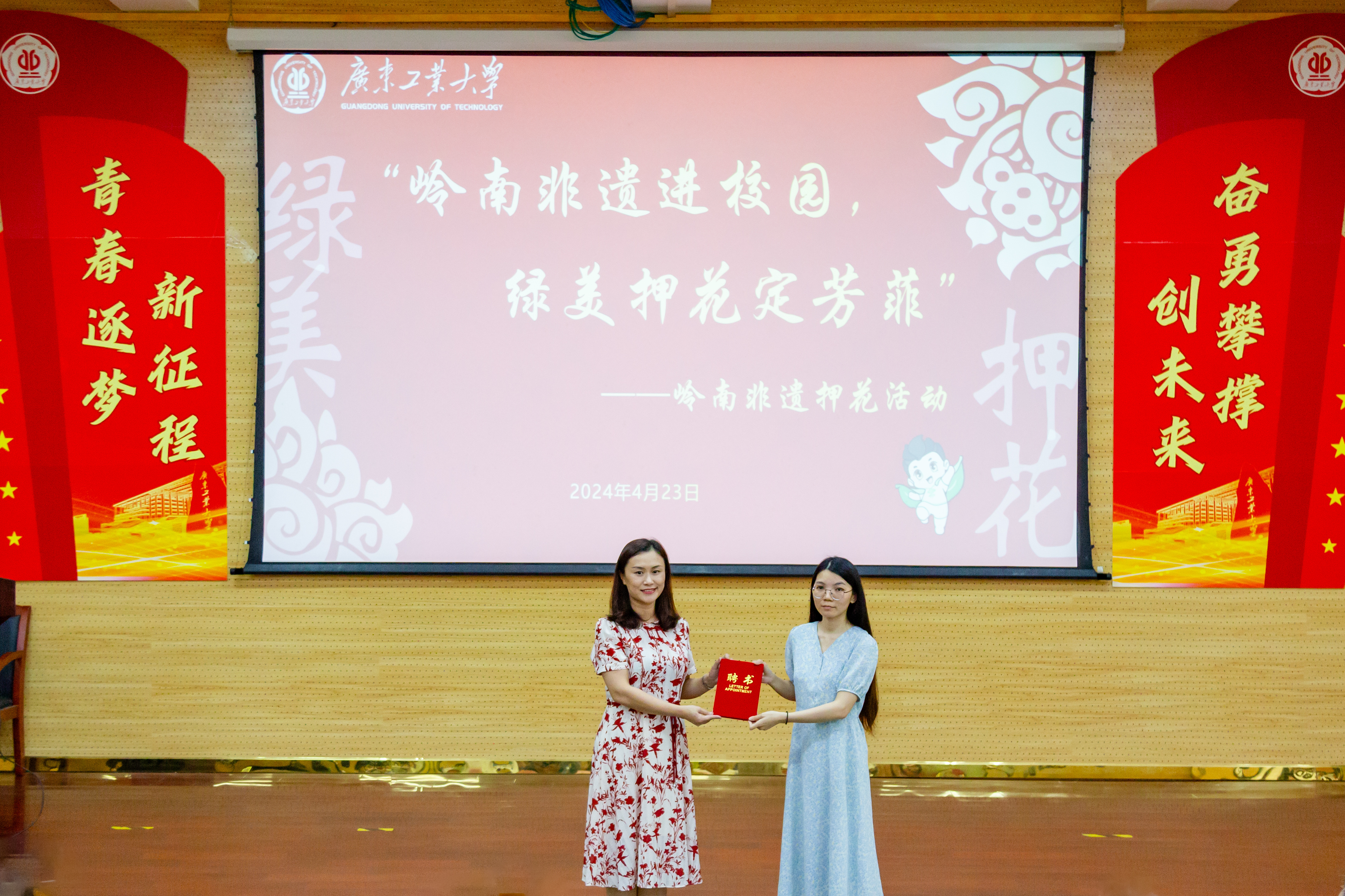 随后进行了校外实践导师聘任仪式及非遗传承宣讲队授旗仪式。后续该队伍将通过组织举办活动,让更多同学了解、学习中华民族非遗文化。