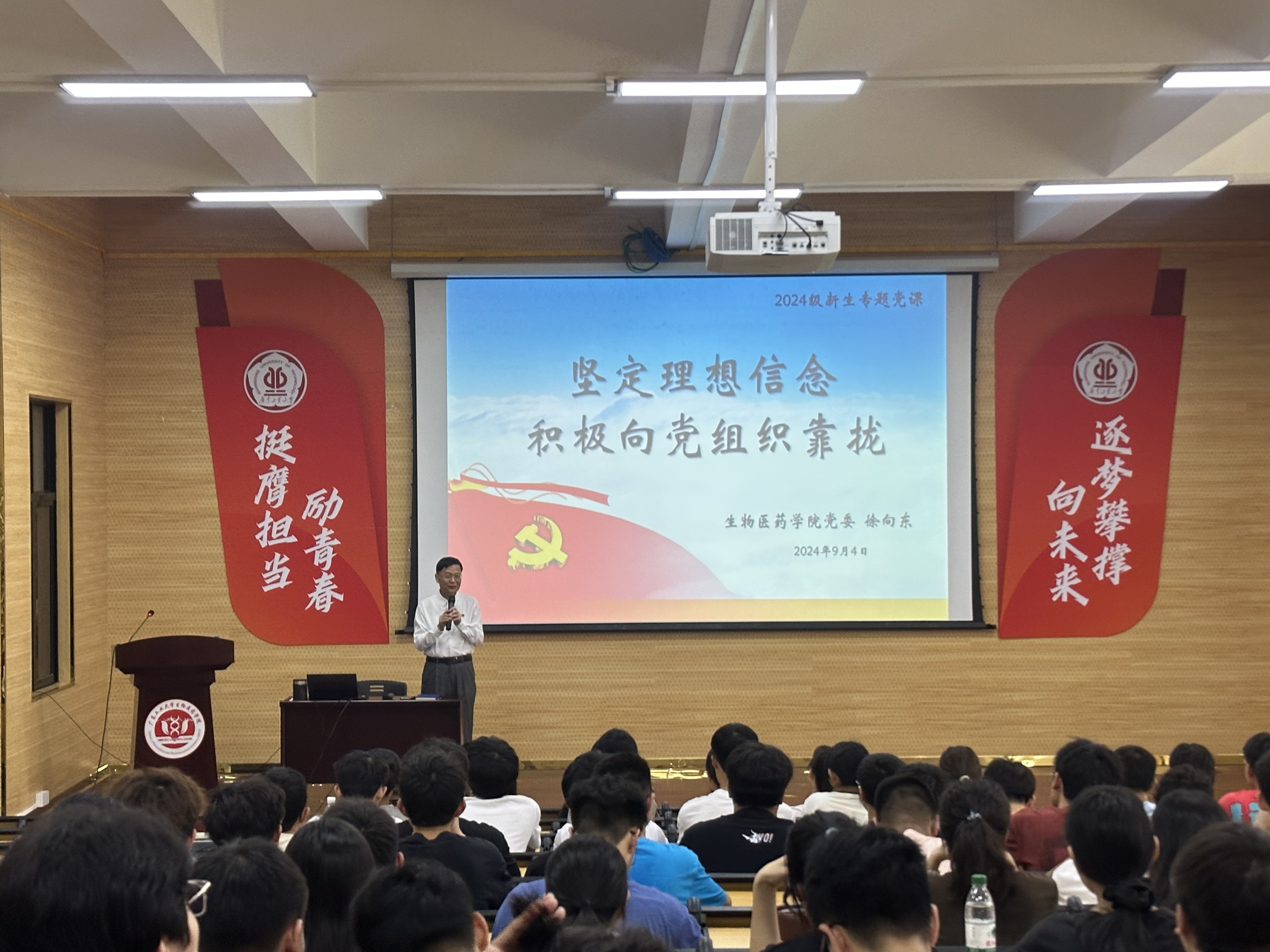 为更好地激发新生的爱国之心、强国之愿、报国之志,引导新生坚定理想信念、端正入党动机,听党话、感党恩、跟党走,9月4日上午,漫蛙漫画 党委书记徐向东在科技南楼学术报告厅为2024级研究生、本科生新生讲授《坚定理想信念,积极向党组织靠拢》专题党课。