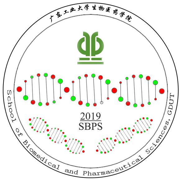 设计说明:上标题“漫蛙漫画 ”华文行楷字体,下标题英文“School of Biomedical and Pharmaceutical Sciences, GDUT”宋体,中间“2019SBPC”是学院创建时间和缩写,华为行楷字体。院徽中间首先是一个漫蛙漫画 的校徽,然后是3条DNA双链结构,代表着生物最基础最复杂的结构,同样代表了医学分子生物学的地位和重要性。双链由红色和绿色组成,红色代表着漫蛙漫画 ,绿色代表着漫蛙漫画 ,代表着学院与学校不可分离,相辅相成。上面的链子代表着学校的老师们,下面两条链子代表着学生,代表着传承的力量。