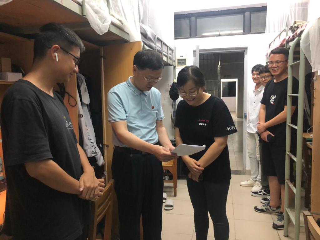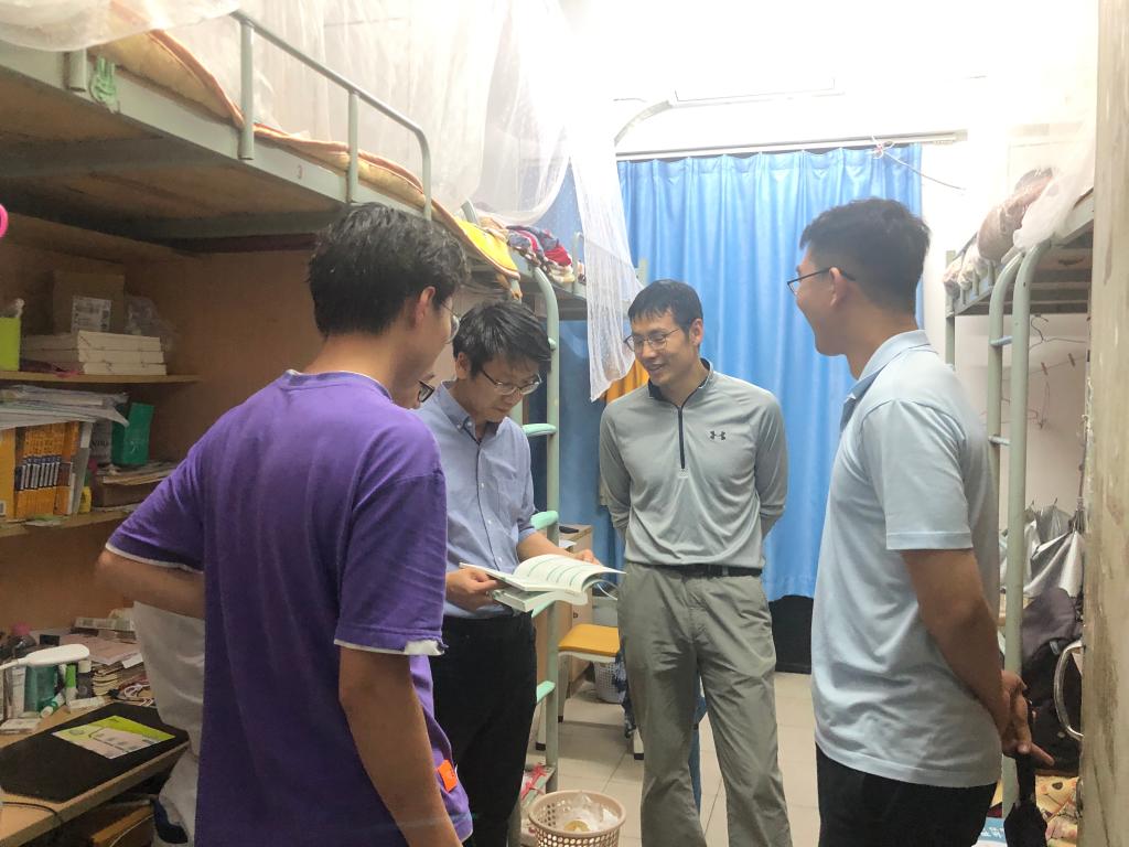学院副院长卢宇靖会同学生工作处副处长王方率队走访了2018级宿舍,对学生考研、就业进行了指导。他认为,大三是大学学业阶段的关键时期,同学们要做好规划,做多手准备,勉励同学们从树立信心、找好定位、明确目标、掌握信息、积极行动等几个方面进行心态调整。